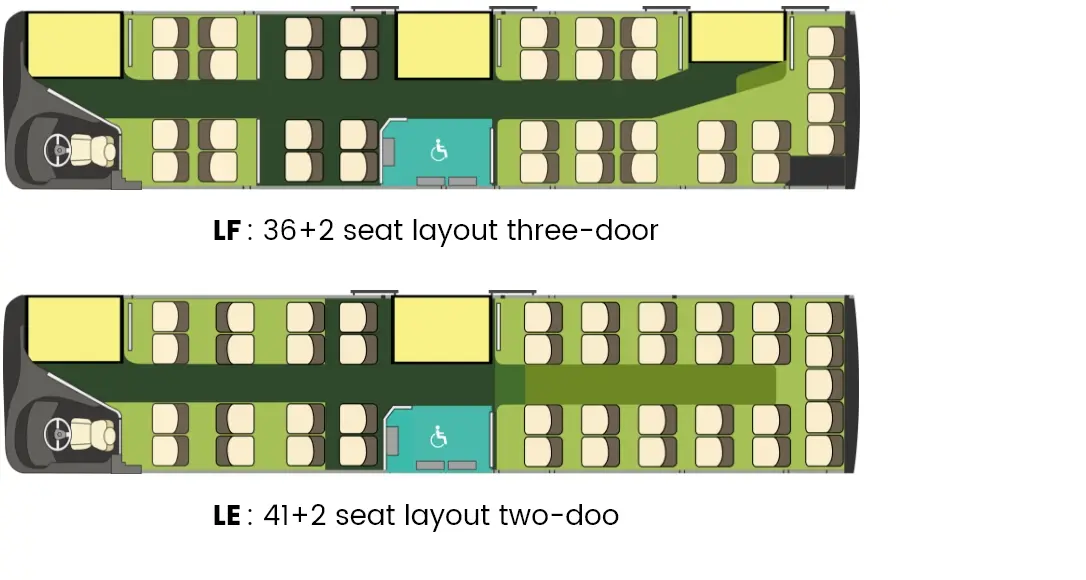 Large Capacity: More seats, up to 41+2 seats on Yutong U12 -